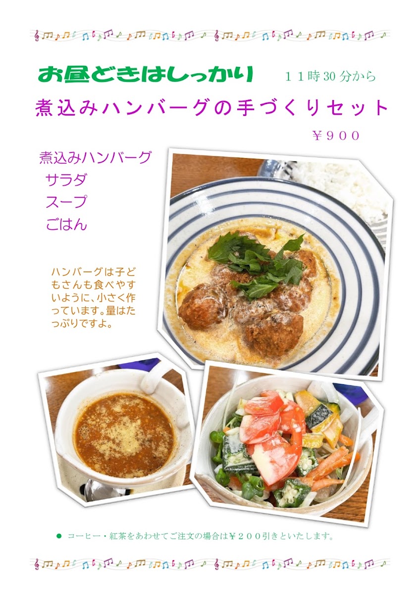 The food selection is equally impressive. Savor the 煮込みハンバーグ定食 (braised hamburger set) at JP¥900, featuring a hearty soup—often a delightful curry—lush with vegetables, alongside a fresh salad and steamed rice. Customers commend the inviting ambiance, adorned with European-inspired decor, and a relaxing soundtrack that enhances the dining experience.